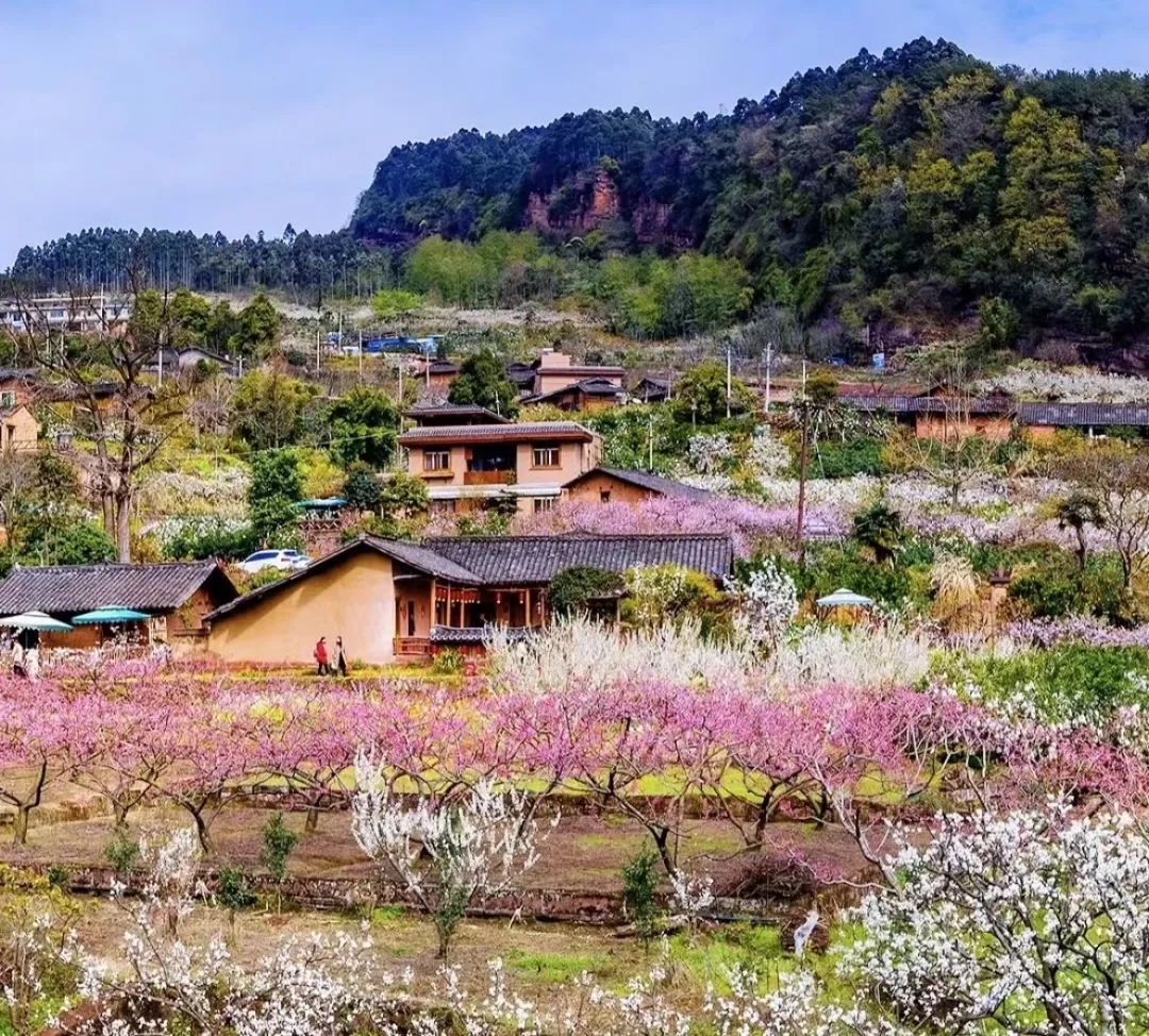 位于眉山市丹棱县顺龙乡的幸福古村,始建于明代,距今有400多年历史,处于一个西北高、东南低的山坡台地上,49个20世纪60~80年代的土墙青瓦的民居院落与环境相生相融,错落有致,像珍珠一般撒落在山坡台地上,是全省少有的保存相对完整的古村落之一。2012年以前这里因位置偏僻,未得以发展,面临人口大量流失、房屋空置破败、传统农业和人文景观日益凋敝等问题。后来按照“严格保护、尊重传统、适度开发、产村相融”的原则进行保护性开发,激活了古村活力,辐射带动周边村民发展农家乐,年接待游客30万人,成为了古村落发展乡村旅游的典型示范村,获得全国一村一品示范村、第一批四川最美古村落、中国美丽休闲乡村等美誉。