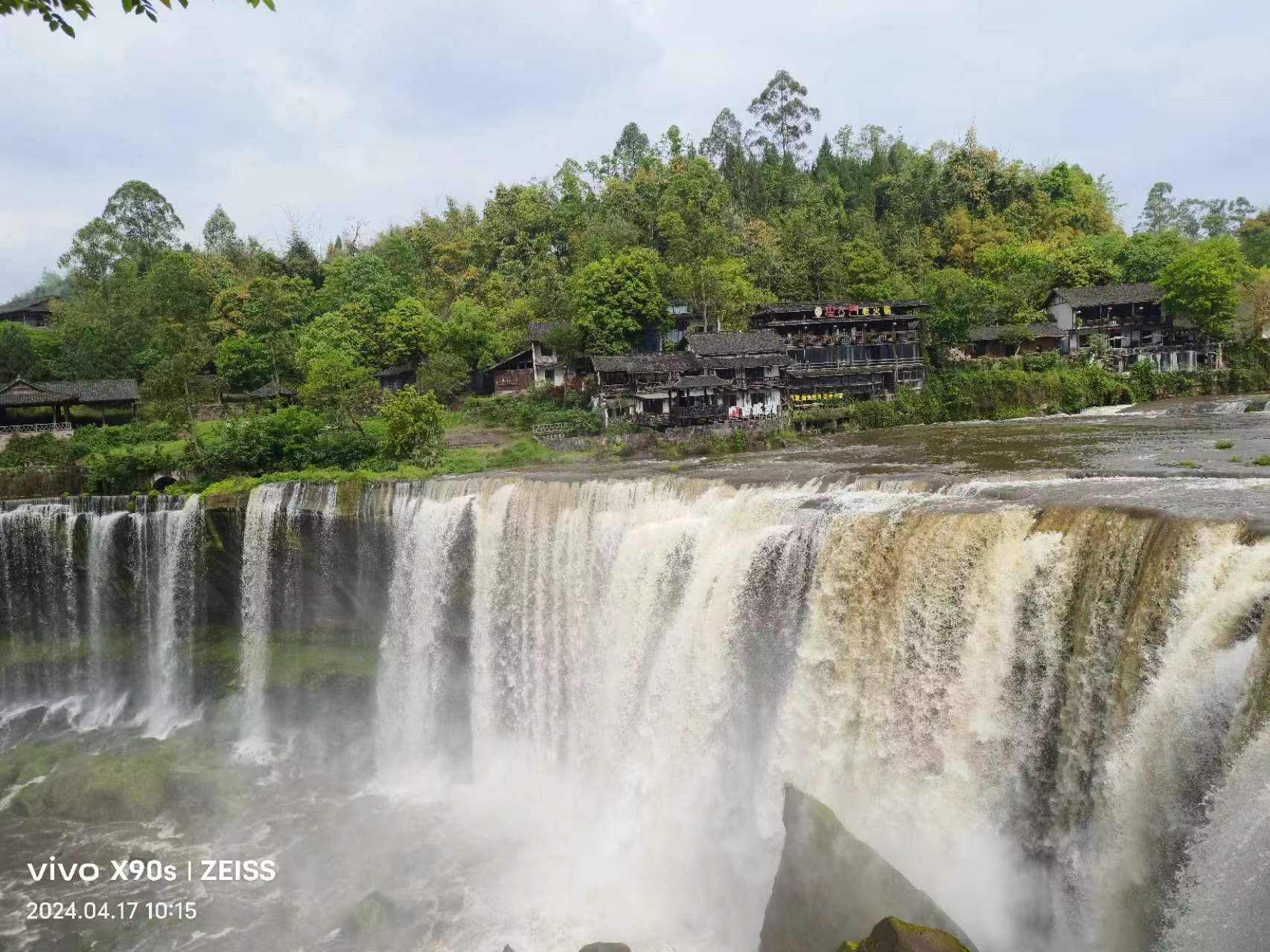 第二天上午,老领导们来到距广安3.5公里的湟龙峡大瀑布,该瀑布宽147米,高25米,属亚洲最宽瀑布之一,瀑布以万马奔腾之势俯冲山谷,气势宏大,景色壮观,在瀑布上游,有一座1300余年历史的万春古桥,据说这是伟人邓小平小时候最喜欢游玩的地方,