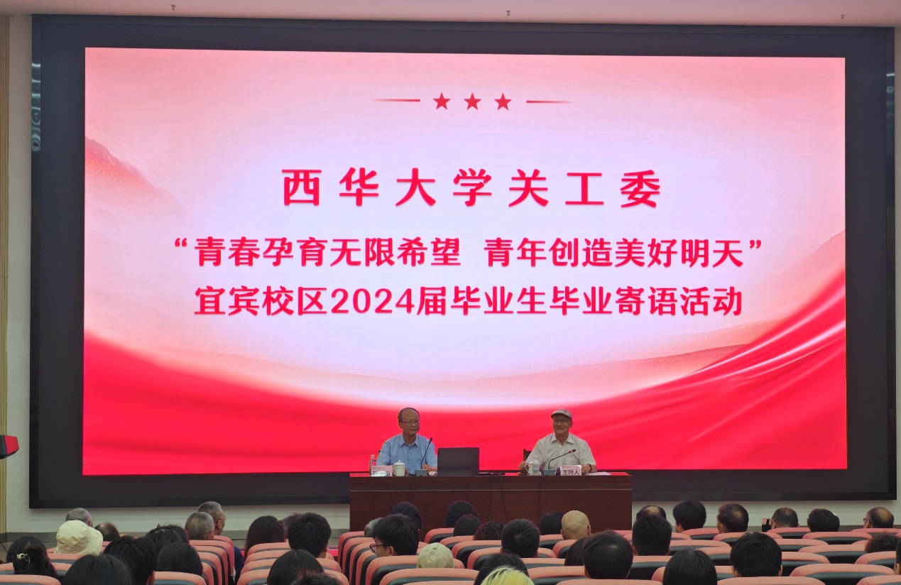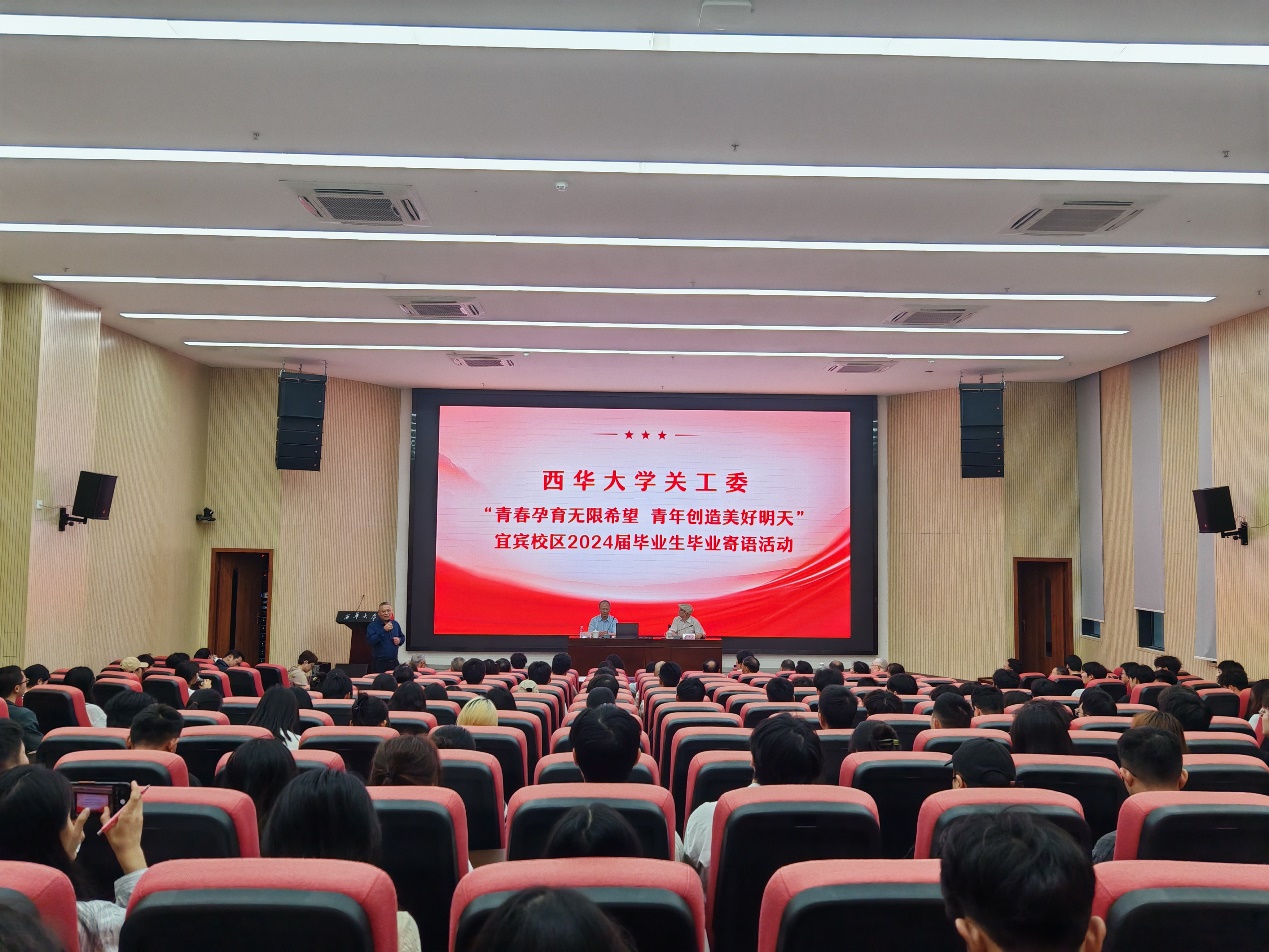 5月9日下午,bw西汉姆联关工委在宜宾校区举办“青春孕育无限希望,青年创造美好明天”毕业寄语活动,吸引了众多学子参与。bw西汉姆联原党委副书记、校长孙卫国教授为毕业生们带来了一场内涵深刻的报告,为即将踏入社会的学子们送上了宝贵的思想财富。bw西汉姆联关工委副主任、bw西汉姆联原党委副书记、绵阳师范学院原党委书记魏成富教授主持活动。