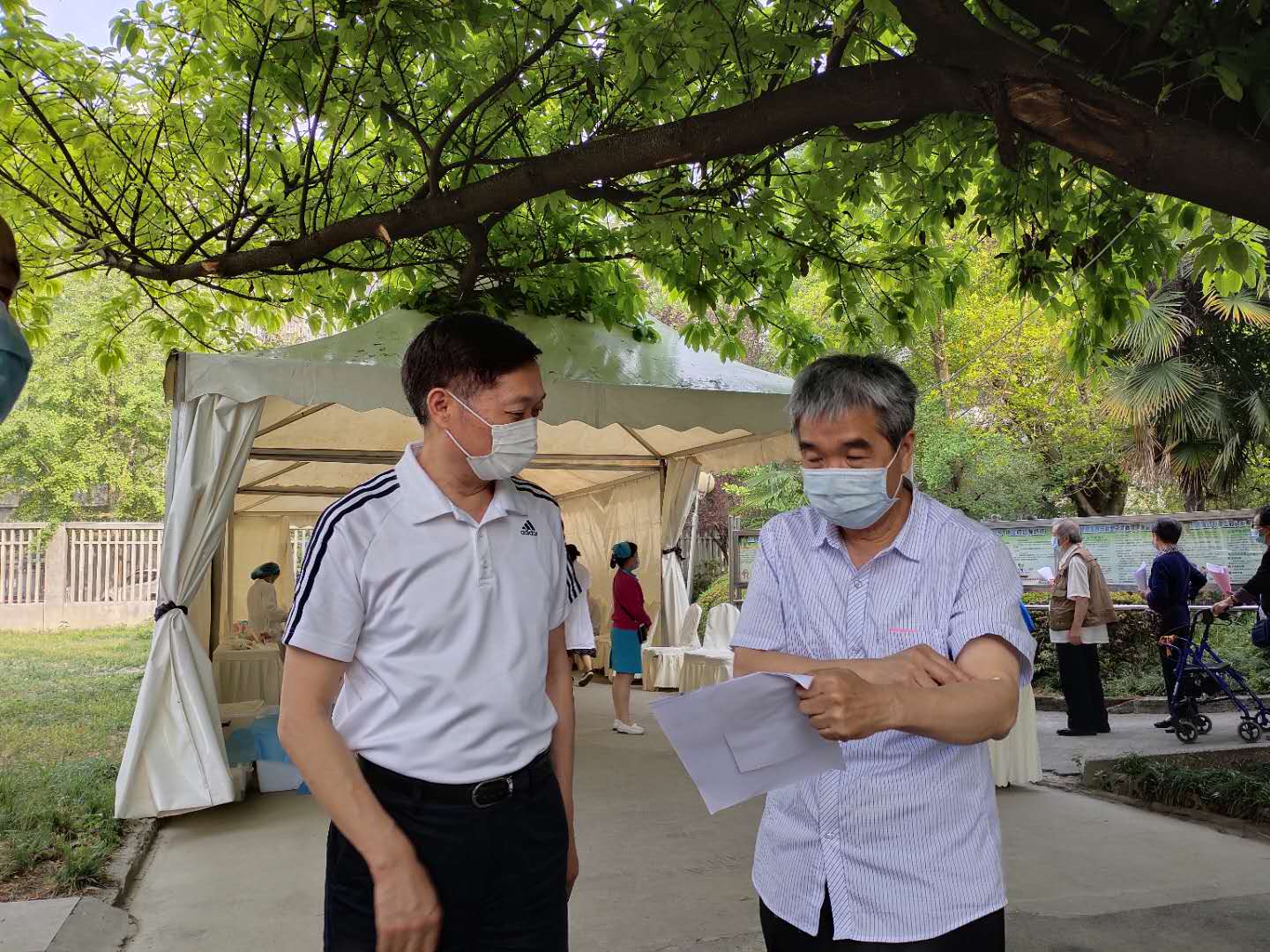 5月6日—5月14日,为了在发放体检通知时减少人员聚集,我处工作人员分别在三个校区的离退休夕阳红活动中心(室)现场发放体检通知、组织确认体检方式,耐心解答老同志的疑问和诉求,帮助老同志根据自身情况有针对性的进行选择,热心帮助部分年龄偏大、视听模糊的老同志扫描并填写“天府健康通”。