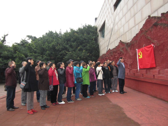 上午9:30我们到达建川博物馆,首先在中流砥柱广场进行了重温入党誓词教育活动。离退休党总支书记何承源同志带领同行的党员同志,面对鲜红的党旗举起右手庄严宣誓,一句句铿锵有力的誓言在每一位党员心中重新点燃那份不变的激情。