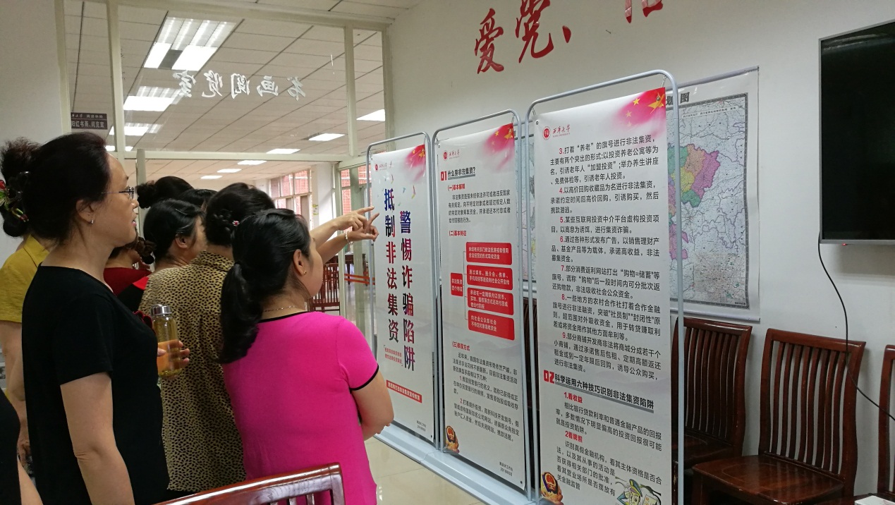 从6月13日起,离退休工作处在夕阳红活动中心一楼阅览室推出防范和打击非法集资宣传教育展览,吸引了众多的离退休人员前来接受教育。老同志们在观看后纷纷表示受益匪浅,通过参观展览自己防范非法集资、防范金融诈骗的能力进一步增强了。
