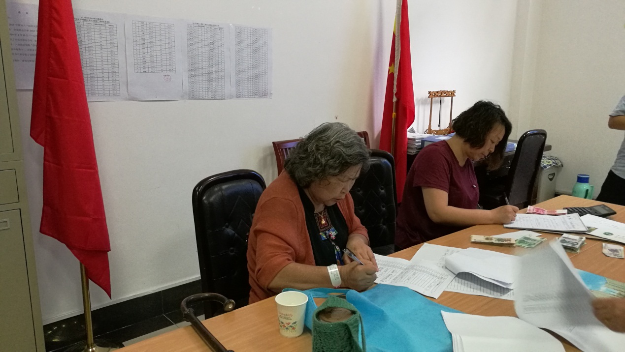 老同志们在本小组设立的捐赠点捐出爱心捐款(图2)