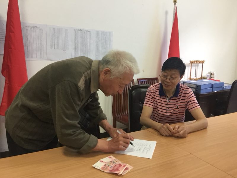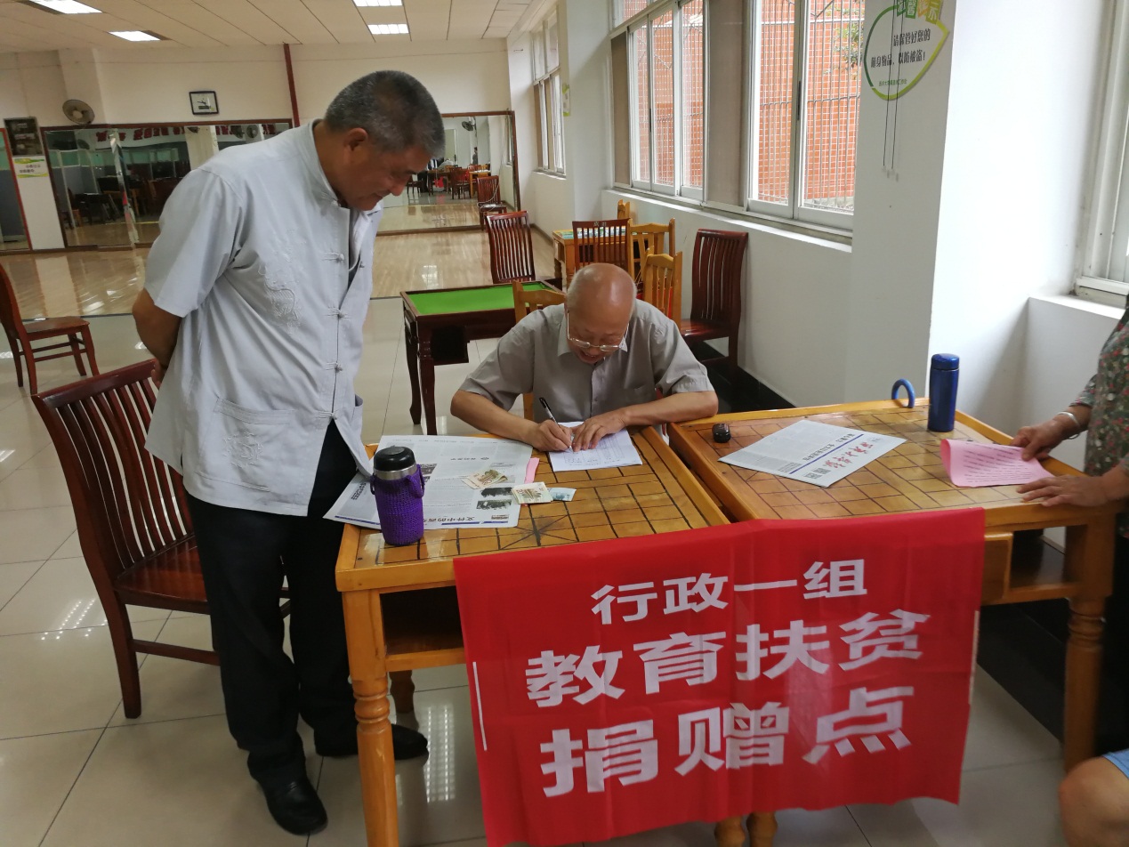 老同志们在本小组设立的捐赠点捐出爱心捐款(图1)
