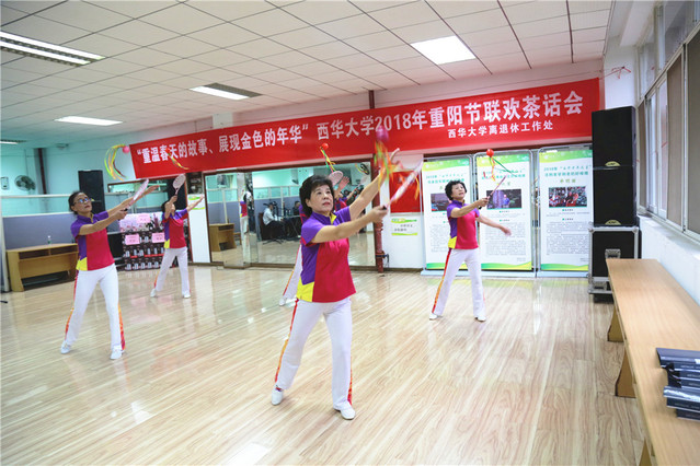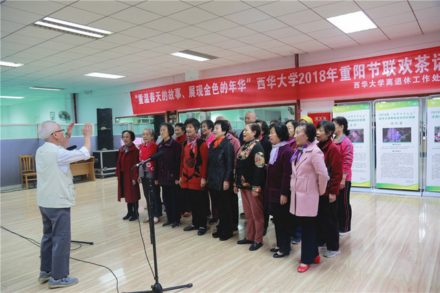 在文艺节目表演环节,共有十二个精彩的节目登台表演,合唱《新时代之歌》激扬高亢,歌曲充分表达了对祖国的热爱与赞美;舞蹈《呼伦牧歌》、《木棉花》、《共筑中国梦》翩翩起舞,引得台下观众连连掌声;男声独唱《祝酒歌》、《在那遥远的地方》、《乐土》歌声嘹亮;配乐诗朗诵《教师的心愿》深情讲述了作为教师的殷切期盼;还有长笛独奏、柔力球表演,活动形式丰富多样,观看节目的老同志们掌声不断,纷纷拍下一幕幕精彩的瞬间。历时一个半小时的联欢茶话会圆满地落下帷幕,参加联欢茶话会的老同志们纷纷表示度过了一个精彩纷呈、令人难忘的重阳节庆祝活动。