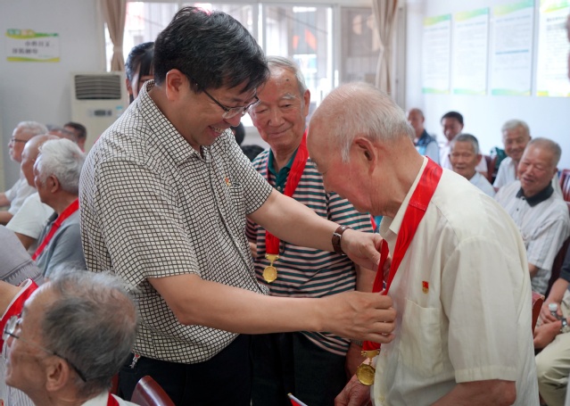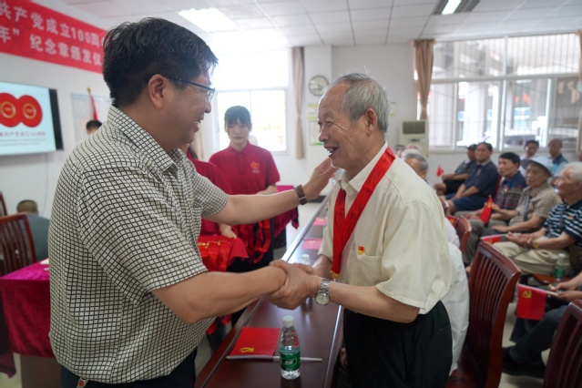 仪式上,王政书向现场的老党员代表颁发纪念章并郑重佩戴,关切询问老前辈的日常生活和健康状况,叮嘱他们要保重身体。佩戴上纪念章,老党员们纷纷表示要始终牢记党的宗旨,听党话、感党恩、跟党走,用实际行动践行共产党员的初心使命。